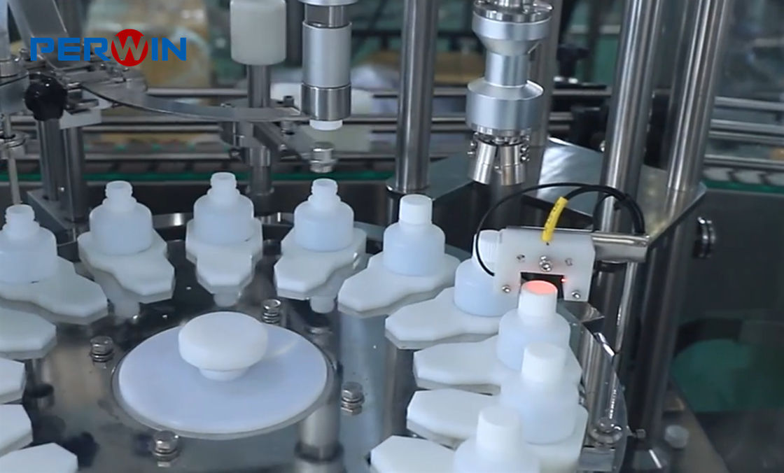 | Belangrijkste functies | Dubbelstation follow-up vulling. Manipulator automatische dopverwijdering, pre-capping en capping technologie, aangedreven door precisie nokkenmechanisme. Servotechnologie regelt het aandraaimoment. Automatische dop sorteereenheid en geluiddichte afdekking. Hef-vulling om spatten te voorkomen. |